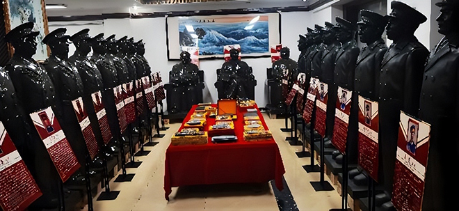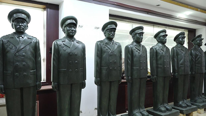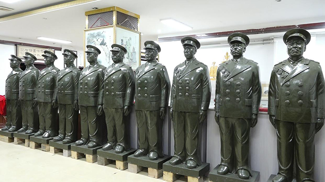 近年来,赵成德怀着对老一辈无产阶级革命家无限崇敬之情,率领公司团队精心设计,精雕细琢,隆重推出巨型洮砚石雕像群——毛泽东、周恩来、朱德三位伟人的雕像,每尊重达4吨,与十大元帅、十位上将的洮砚石雕塑群,共同构成“红色文化暨非遗艺术”的独特景观。